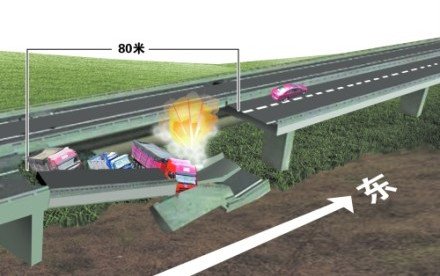 但也有人質(zhì)疑為什么現(xiàn)場(chǎng)會(huì)有一座橋墩斷裂,而不僅僅是“橋面垮塌”。橋墩斷裂的原因可能是如下兩種:1,爆炸點(diǎn)正好在墩頂,橋墩被沖擊荷載破壞;2, 爆炸點(diǎn)雖然不在墩頂,但墩頂有固定支座,沖擊荷載的作用通過(guò)連續(xù)梁作用于墩頂,將橋墩推倒。