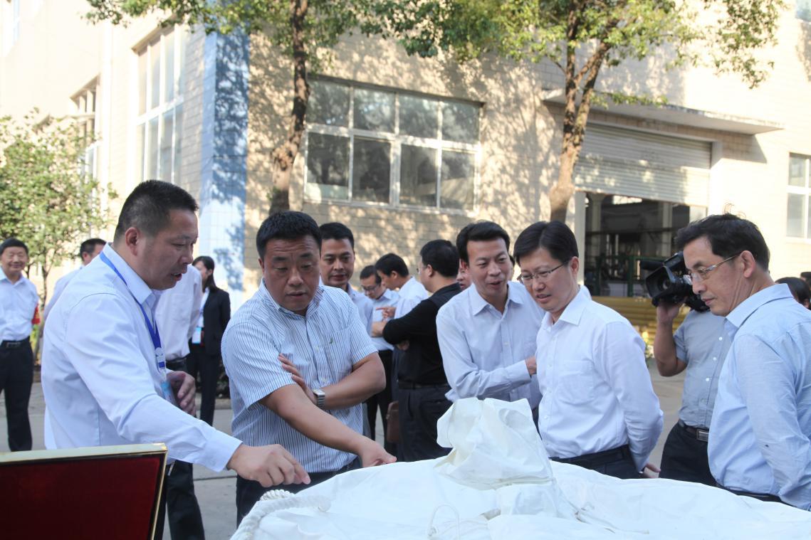2015年10月12日下午秋高氣爽,伴隨兩輛大巴車緩緩駛入公司大門,國務院辦公廳國務院應急辦巡視員兼副主任劉建波、副巡視員陳勝、應急辦處長呂紅頻,工業(yè)和信息化部運行監(jiān)測協(xié)調局副巡視員許國祿、調研員曲國燊,發(fā)展改革委經濟運行調節(jié)局處長王萬平、科技部社會科技發(fā)展司調研員鄭忠、湖北省政府副秘書長兼辦公廳黨組副書記王順華、省經信委副主任吳方軍、省政府應急辦副主任宋煒、省經信委經濟運行處副處長劉良博、隨州市市長郄英才、隨州市副市長王志勇、隨州市經信委主任布厚偉等一行二十余人到訪湖北金龍集團公司,曾都區(qū)區(qū)委書記、區(qū)長和湖北金龍集團公司董事長、黨委書記饒金才等相關領導全程陪同。